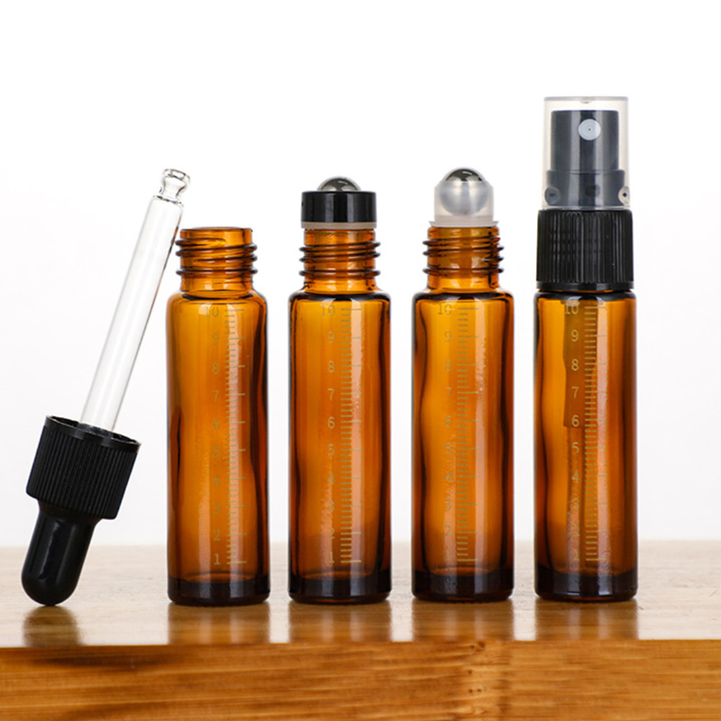 Essential Oil Roller Bottles 10ml Amber Glass Bottle with Stainless Steel Roller Balls and Caps